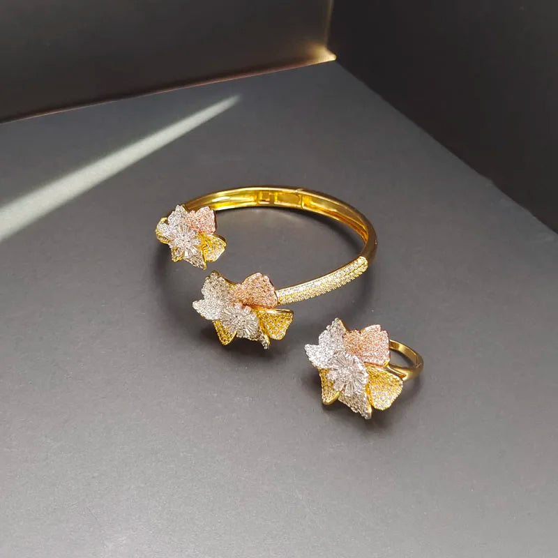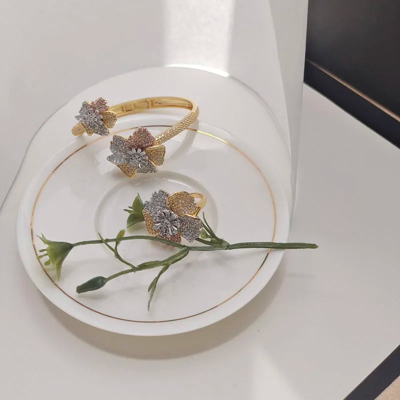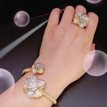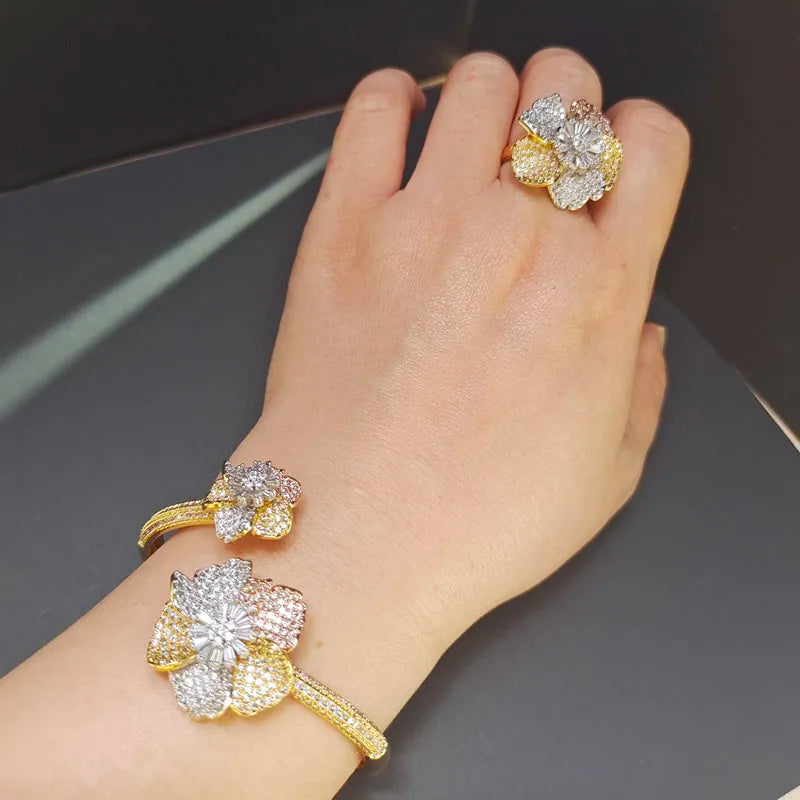 EnKaays Original Design Cubic Zirconia Classic Flower Bangle and Ring Jewelry