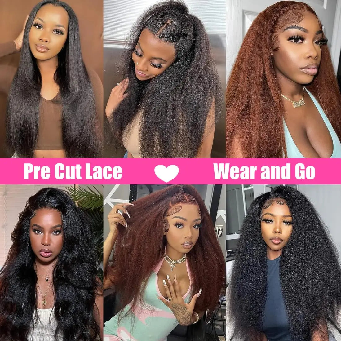 EnKaays Wear and Go Glueless Wigs Human Hair Pre Plucked Kinky Straight Lace Closure Wigs Human Hair Yaki Straight Wigs Human Hair